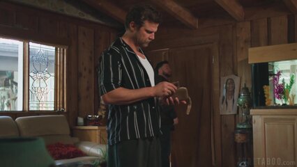 Вот Винс Картер - молодец. Он сразу понял, чо это какая то хуёвая идея трахать незнакомую тёлку, которую они нашли прикованной к кровати на съемной хате... а вот Сет Гамбл дал маху - член у него думает вместо головы, так что очень скоро эту сисястую зрелую азиатку долбили в анал дуплетом, забыв об осторожности и не думая о том, что тут творится какая то хуйня!