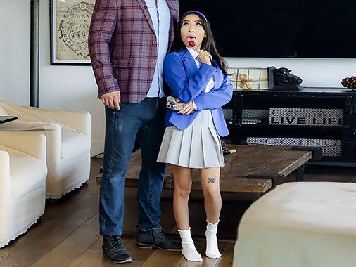 Мужчину достало, что эта деваха, хоть и большая уже (только по паспорту), а дома ничего не делает - только в телефонах своих сидит! Конечно это не он её такой воспитал, а его жена, но никогда не поздно преподать пару практический занятий - здоровяк поймал бездельницу и отшлепал по попе, после чего бедняжке стало сразу стыдно и она решила загладить свои грехи